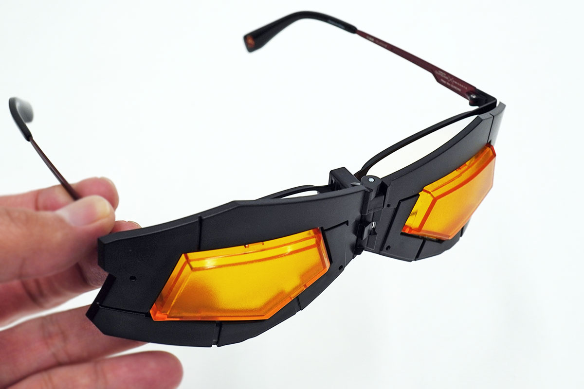 メガネにサングラス仕様のレンズをひっかけるというのはあるとして、なぜガンダムのデュアルモニターを?