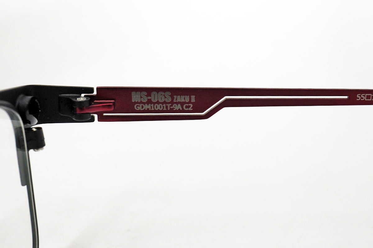 レッドとダークグレーのコンビのフレームとなり、MS-06Sという機体の形式番号までレーザー刻印や専用機メタルロゴが入る懲りよう。