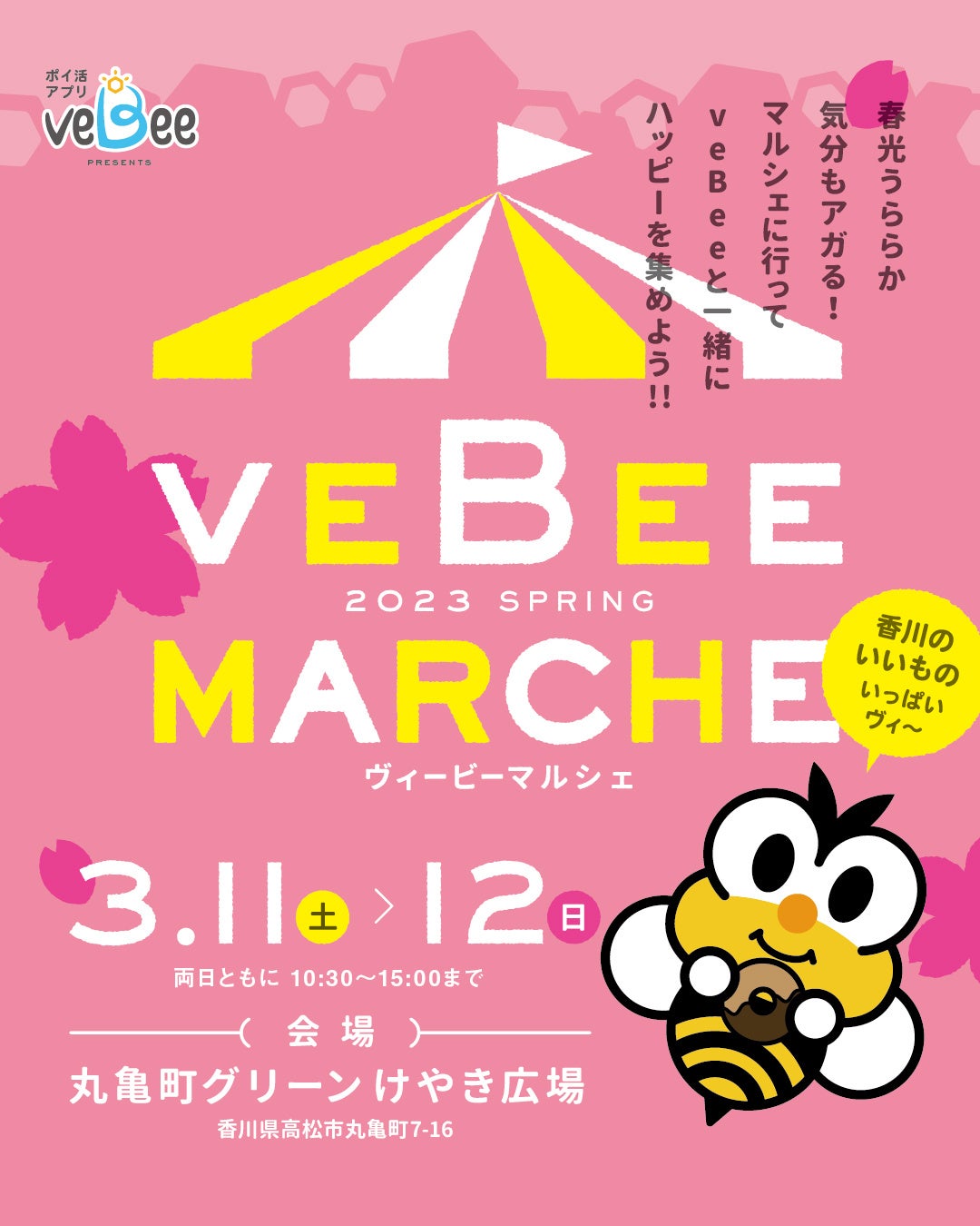 2023年2月~は丸亀町グリーンけやき広場をジャックしveBee一色で埋め尽くされている。