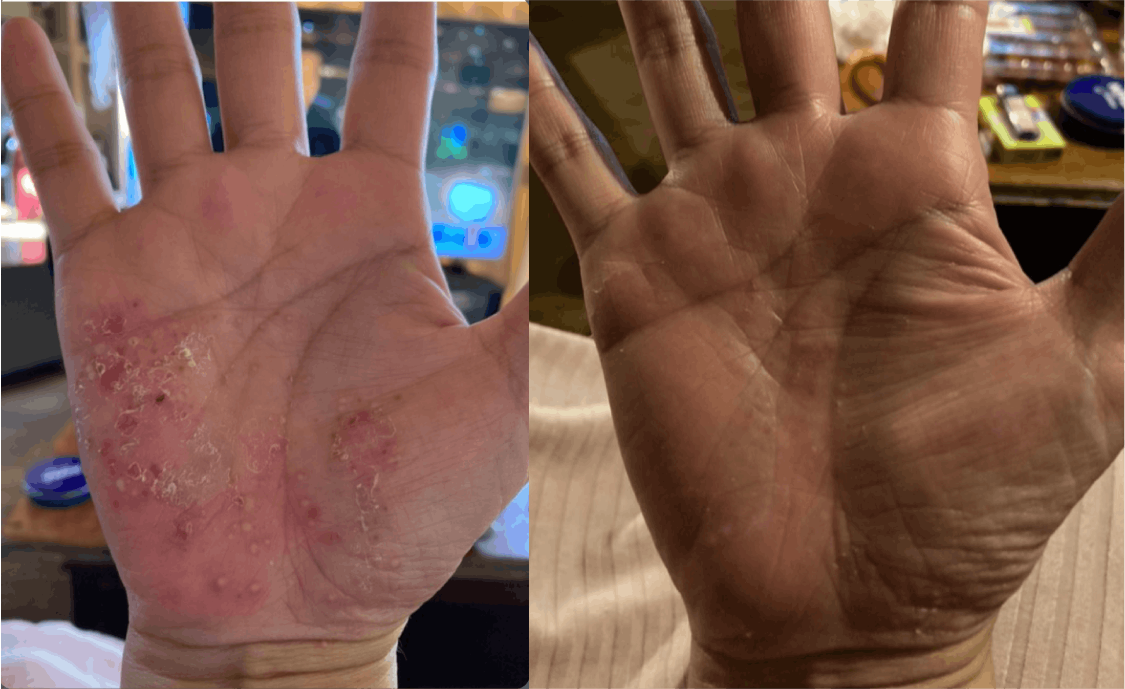 ○掌蹠膿疱症等皮膚疾患症状の改善 (参照写真)