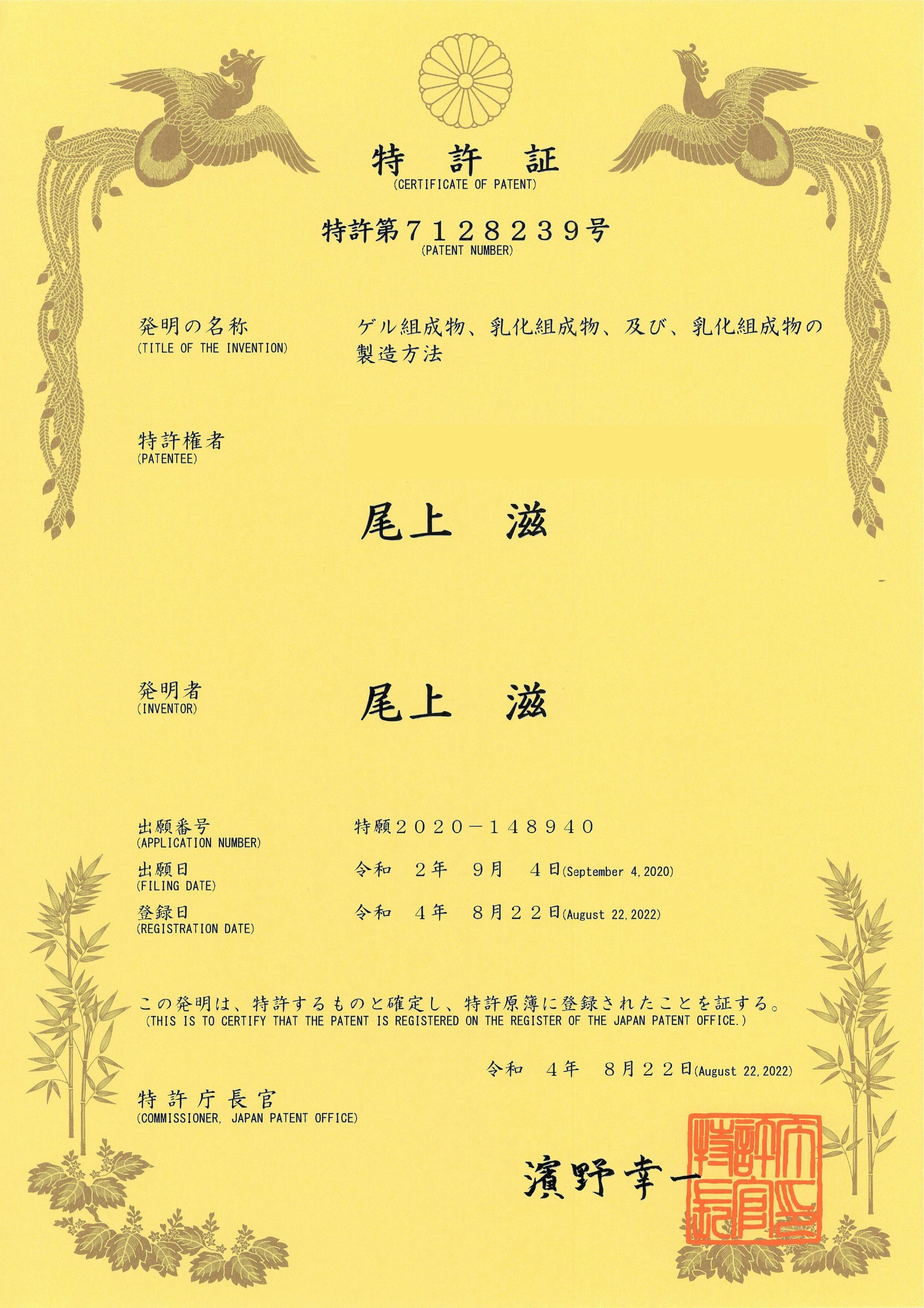 開発にあたって地方独立法人大阪産業技術研究所 和泉センターにラボを設置し、時間の許す限り膨大なサンプル試作を繰り返し特許取得を果たしました。
